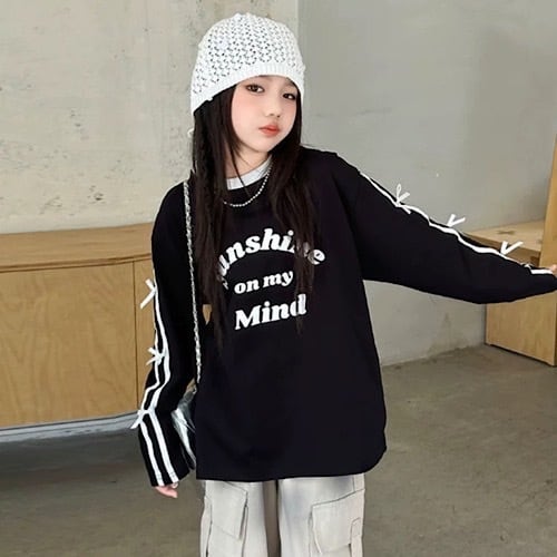 【1971】 女の子トップス GIRLSトップス 長袖 春 秋 トップス 韓国服 ギャル キッズ服 韓国キッズ服 ロンT 薄手 リボン
