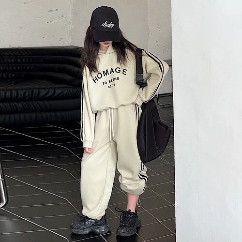 【2083】キッズセットアップ 女の子セットアップ 長袖 秋 冬 韓国服 ギャル キッズ服 上下セット サイドライン